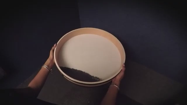 Material: Madera de haya tratada, cuero sintético y bolitas de acero/plástico